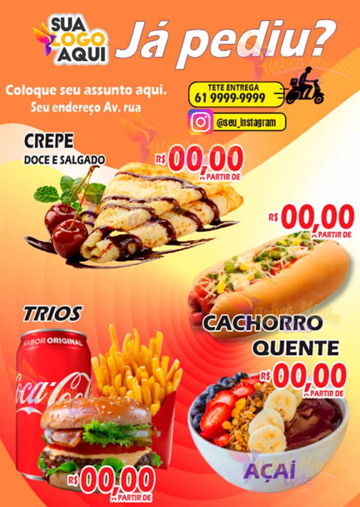 Pesquise Aqui Encartes Outdoor Cardápios Stores/Feeds Flyer Cursos Painel Voltar/ All Flyers Já pediu? Aumente suas vendas com os nossos panfletos para salão de beleza editáveis. COMO EDITAR UM ARQUIVO? Este modelo (Flyer, Panfletos, Folhetos) é totalmente editável em CDR em VETOR, construído pelo aplicativo CorelDraw, adicione seus itens promocionais e informações e divulgue suas ofertas […]