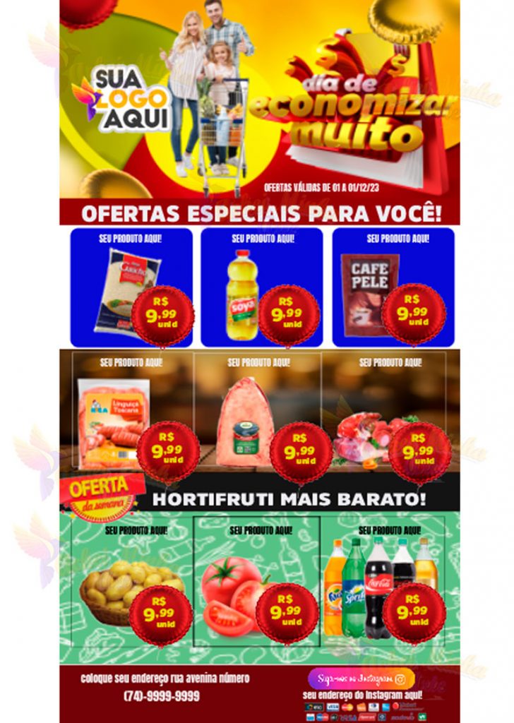 Pesquise Aqui Encartes Outdoor Cardápios Stores/Feeds Flyer Cursos Painel Voltar/ Encarte/ Dia de economizar muito Aumente suas vendas com os nossos encartes editáveis promocionais para supermercados ou mercearias. COMO EDITAR UM ARQUIVO? Este modelo é totalmente editável em EPS em VETOR, construído pelo aplicativo Adobe Illustrator, adicione seus itens promocionais e informações e divulgue suas ofertas com esse […]