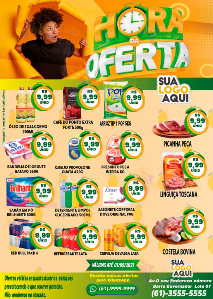 Pesquise Aqui Encartes Outdoor Cardápios Stores/Feeds Flyer Cursos Painel Voltar/ Encarte/ Hora da Oferta Verde Amarelo Aumente suas vendas com os nossos encartes editáveis promocionais para supermercados ou mercearias. COMO EDITAR UM ARQUIVO? Este modelo é totalmente editável em EPS em VETOR, construído pelo aplicativo Adobe Illustrator, adicione seus itens promocionais e informações e divulgue suas ofertas com […]